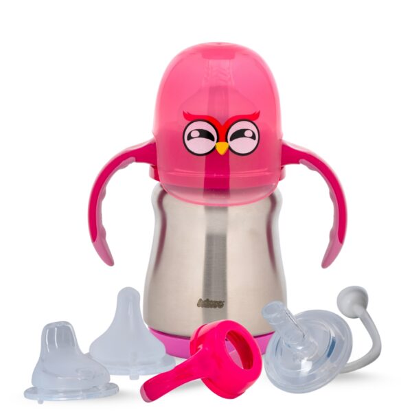 Adore® ELEGANCE! Stainless Steel 3-Stage Feeding Bottles are crafted from premium 304 (18/8) Food-Grade Stainless Steel, paired with a soft, Food-Grade Silicone Teat, Spout, and Gravity Ball Straw ensuring safety, durability, and comfort at every stage of your baby’s growth.