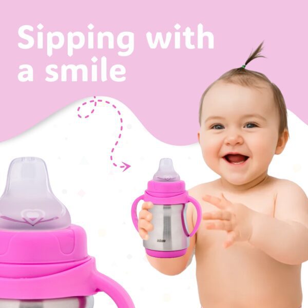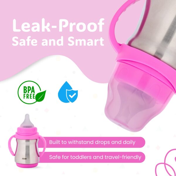 Adore STELLAR! 3 Stage Stainless Steel Feeding Bottle with Twin Handle 310ml – Pink
