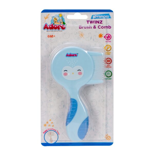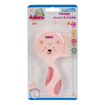 Adore Presents the all-new Twinz Brush & Comb set that has been meticulously crafted to the highest safety standards. This set makes it easy to groom your little one’s hair. This brush features super soft nylon bristles that help in removing tangles and has round edges that make it easy to move around. This comb has an integrated smooth teeth section to comfortably glide through the baby’s hair.